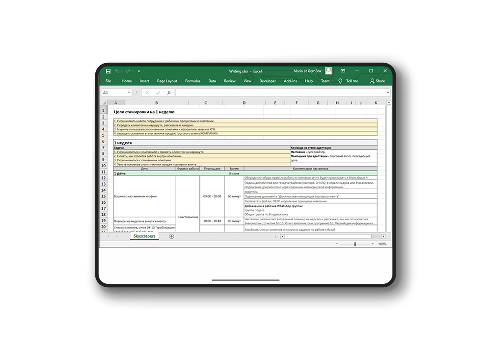 Задача: раскрыть задачи сотрудника и познакомить со смежными отделами для эффективной работы.